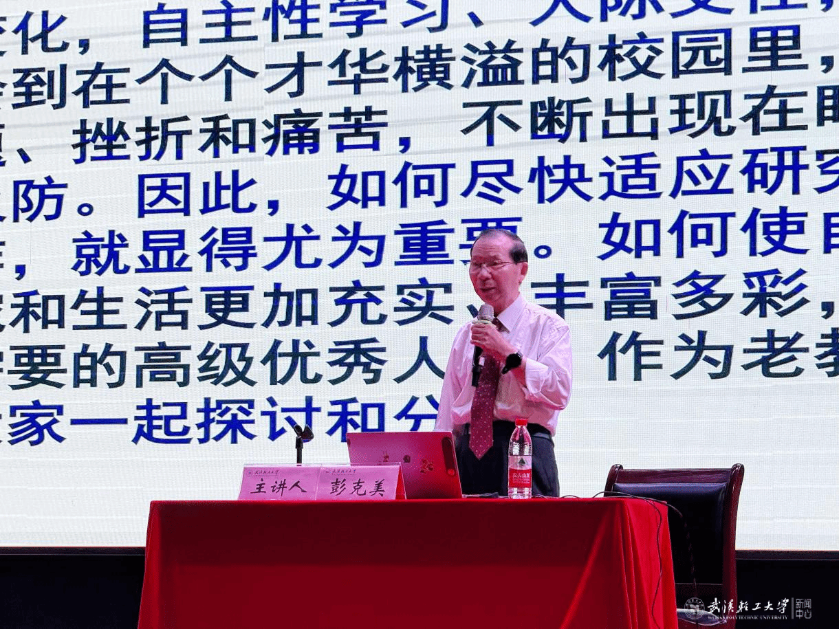彭克美以“创新思维 刻苦钻研,做新时代的优秀研究生”为题,结合自己数十年的科研与教学实践经验,从角色思路调整、课题科学选择、科研攻坚克难、学术诚信坚守、论文规范写作、高效学术交流及优质团队协作等维度,系统讲解了研究生阶段的能力要求与成长路径。他用鲜活案例、深刻洞察和饱满热情,既强调了刻苦钻研的重要性,更生动诠释了新时代优秀研究生应有的精神品格与责任担,特别指出 “诚信是学术生涯的‘生命线’,必须恪守底线、不踩红线、不闯雷区”。