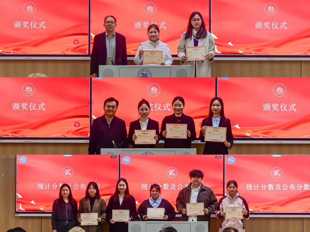 在热烈的掌声中,党委研究生工作部、研究生院副部长、副院长黄磊、马克思主义学院党委副书记潘春波、党委研究生工作部、研究生院思政科张桥老师分别为一等奖、二等奖、三等奖获奖选手颁发获奖证书。
